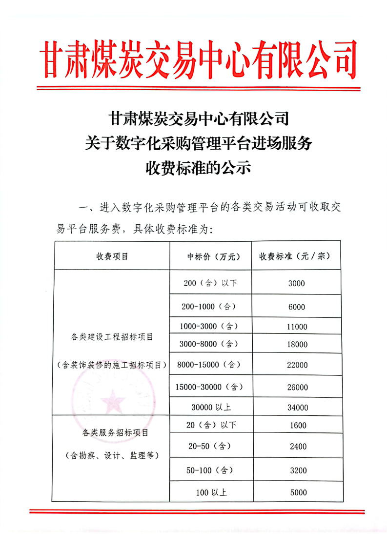 關(guān)于數(shù)字化采購管理平臺(tái)進(jìn)場(chǎng)服務(wù)收費(fèi)標(biāo)準(zhǔn)的公示